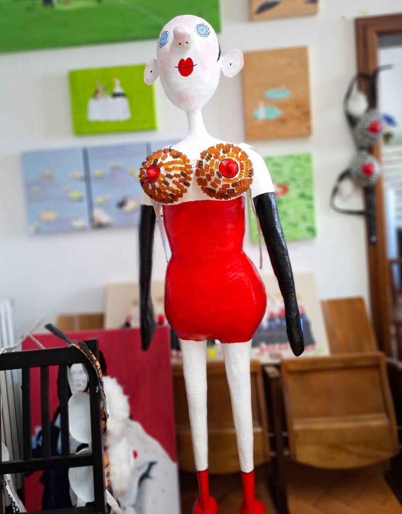 Doch damit nicht genug. Die Künstlerin ist eine fein.- und scharfsinnige Interpretin unserer Zeit und ihrer sozialen Phänomene die mit ihren Ausdrucksformen experimentiert und sie weiterentwickelt ausgehend von dem Bedürfnis sich Fragen zu stellen  und sich darauf einen ganzen Fächer von Antworten zu geben.