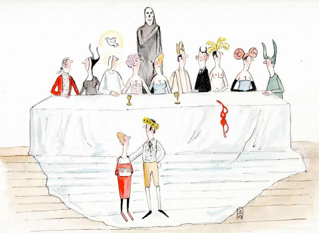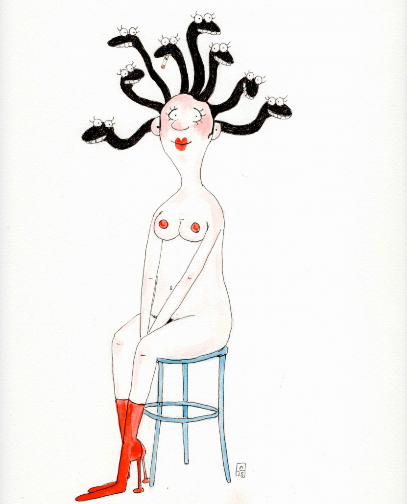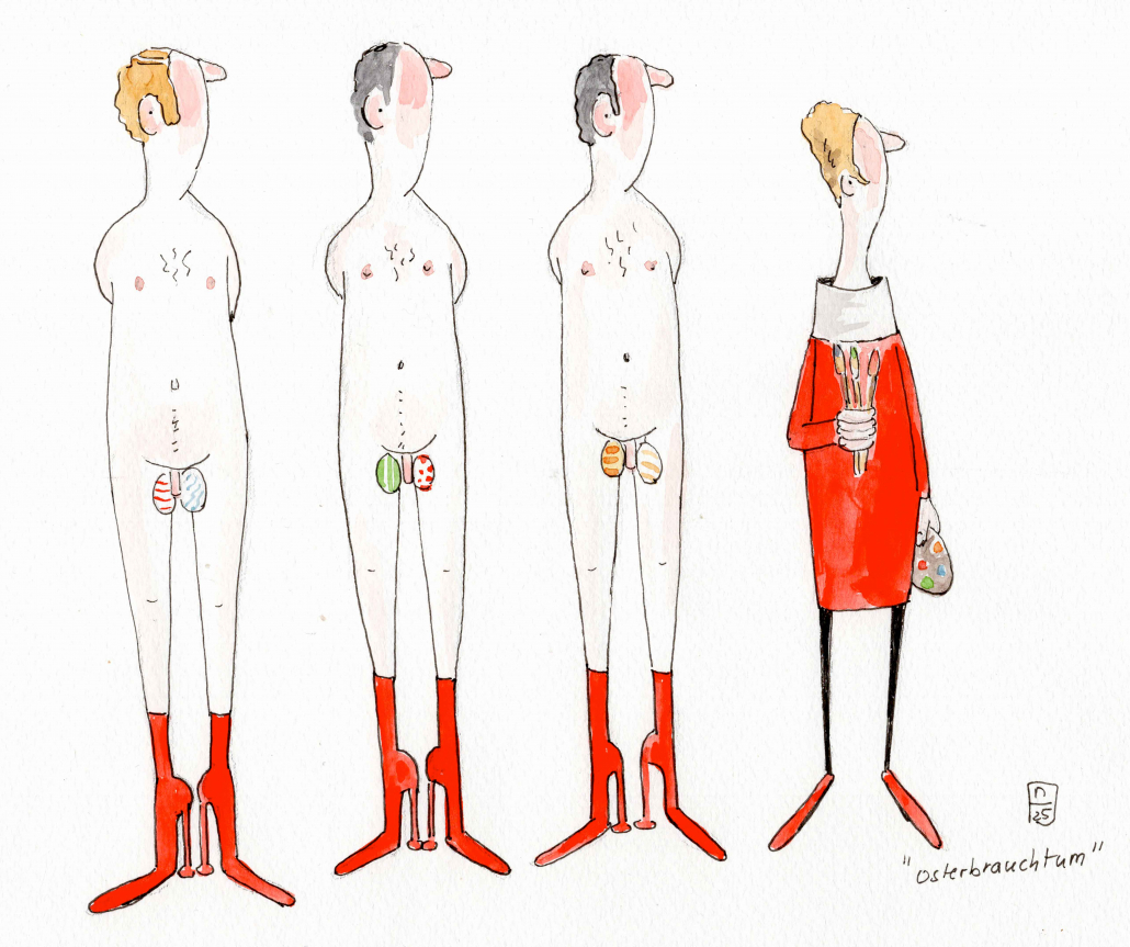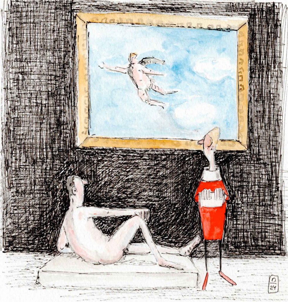„……. Ich denke jede Form der Kunst ist erlaubt, außer einer langweiligen. Meine Zeichnungen sind ziemlich leicht verständlich was ein Handicap für strenge Experten und Ideologen ist. Sie genieren sich oft, wenn ihnen etwas Unterhaltendes und leicht zu Begreifendes gefällt …